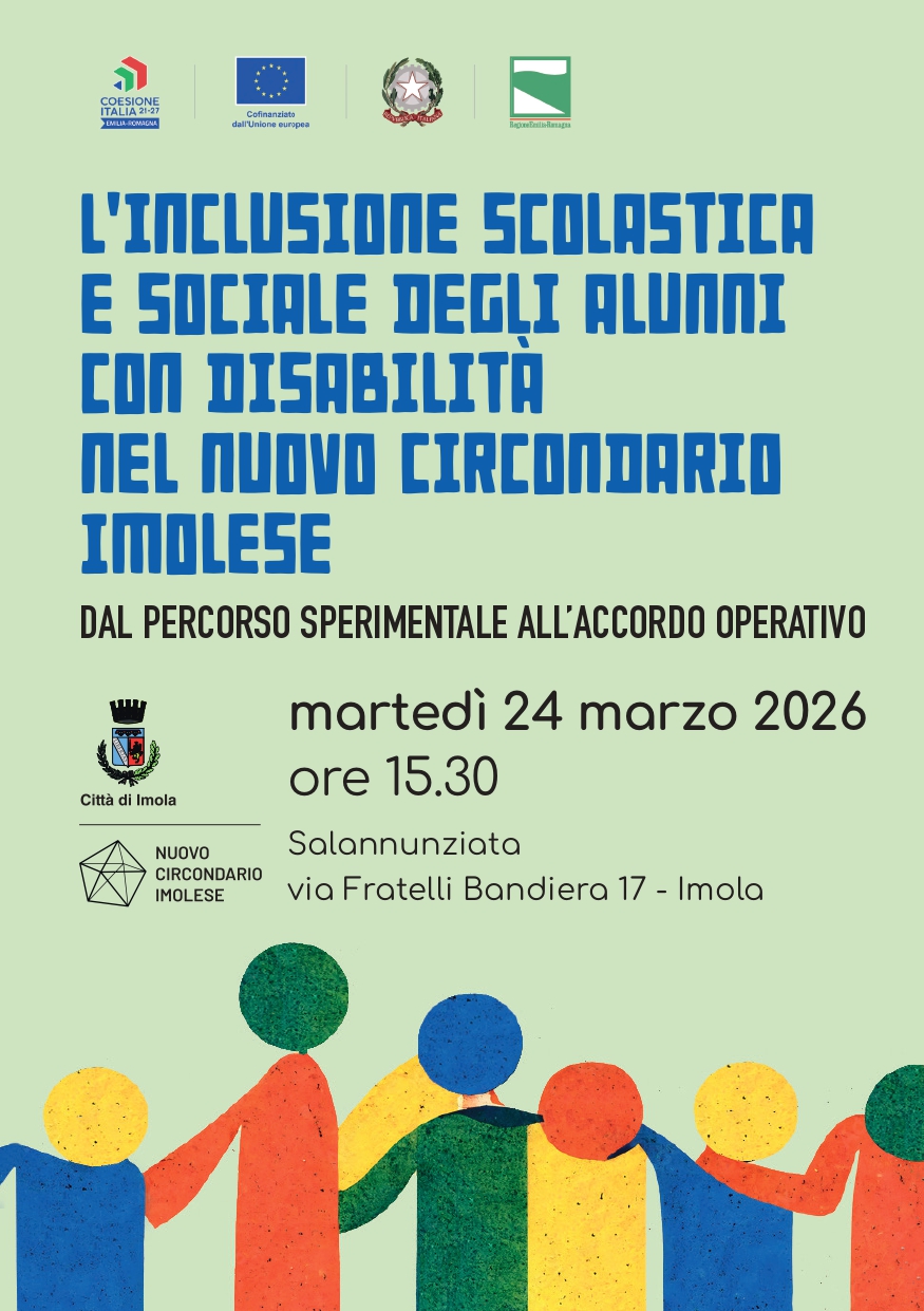 Questo importante lavoro sarà al centro del convegno pubblico “L’inclusione scolastica e sociale degli alunni con disabilità nel Nuovo Circondario Imolese – dal percorso sperimentale all’Accordo operativo”, in programma martedì 24 marzo 2026 alle ore 15.30 presso la Salannunziata. via Fratelli Bandiera 17 – Imola.