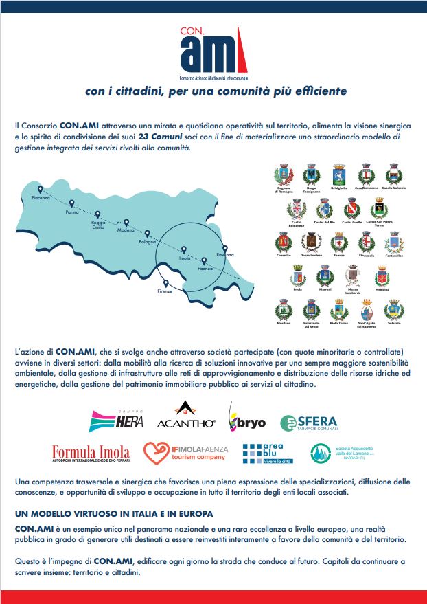 Il Consorzio CON.AMI attraverso una mirata e quotidiana operatività sul territorio, alimenta la visione sinergica e lo spirito di condivisione dei suoi 23 Comuni soci.